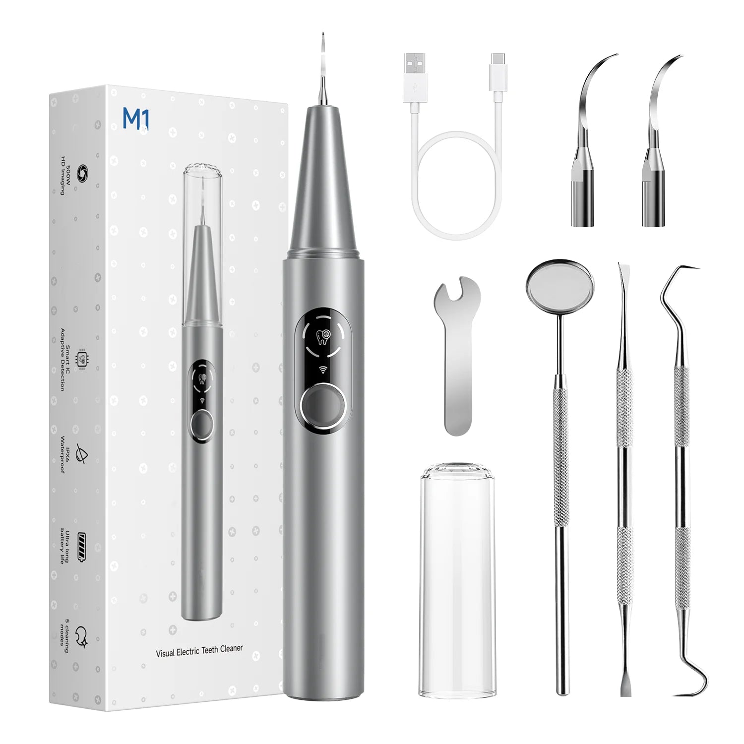 The Visual Electric Teeth Cleaner Kit is designed to elevate at-home oral care by combining precision cleaning with real-time visual guidance. This advanced dental tool helps target plaque, tartar, and buildup in hard-to-reach areas while supporting healthier gums and fresher breath. Featuring a sleek, rechargeable design and multiple interchangeable tips, it allows for customized cleaning based on comfort and needs. The visual functionality enhances accuracy and confidence during use, making it easier to maintain professional-level oral hygiene from the comfort of home. Ideal for daily care or deeper clean sessions, this kit supports a cleaner, brighter smile through consistent use.